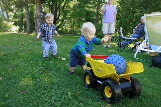 Sam couldn't get enough of the ever ubiquitous tractor. "Tractor", "bulldozer", and "backhoe" are his new favorite words.